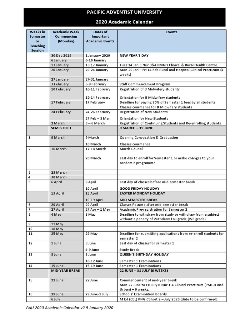 Pau 2020 Academic Calendar Pdf Pdf Academic Term Educational Institutions